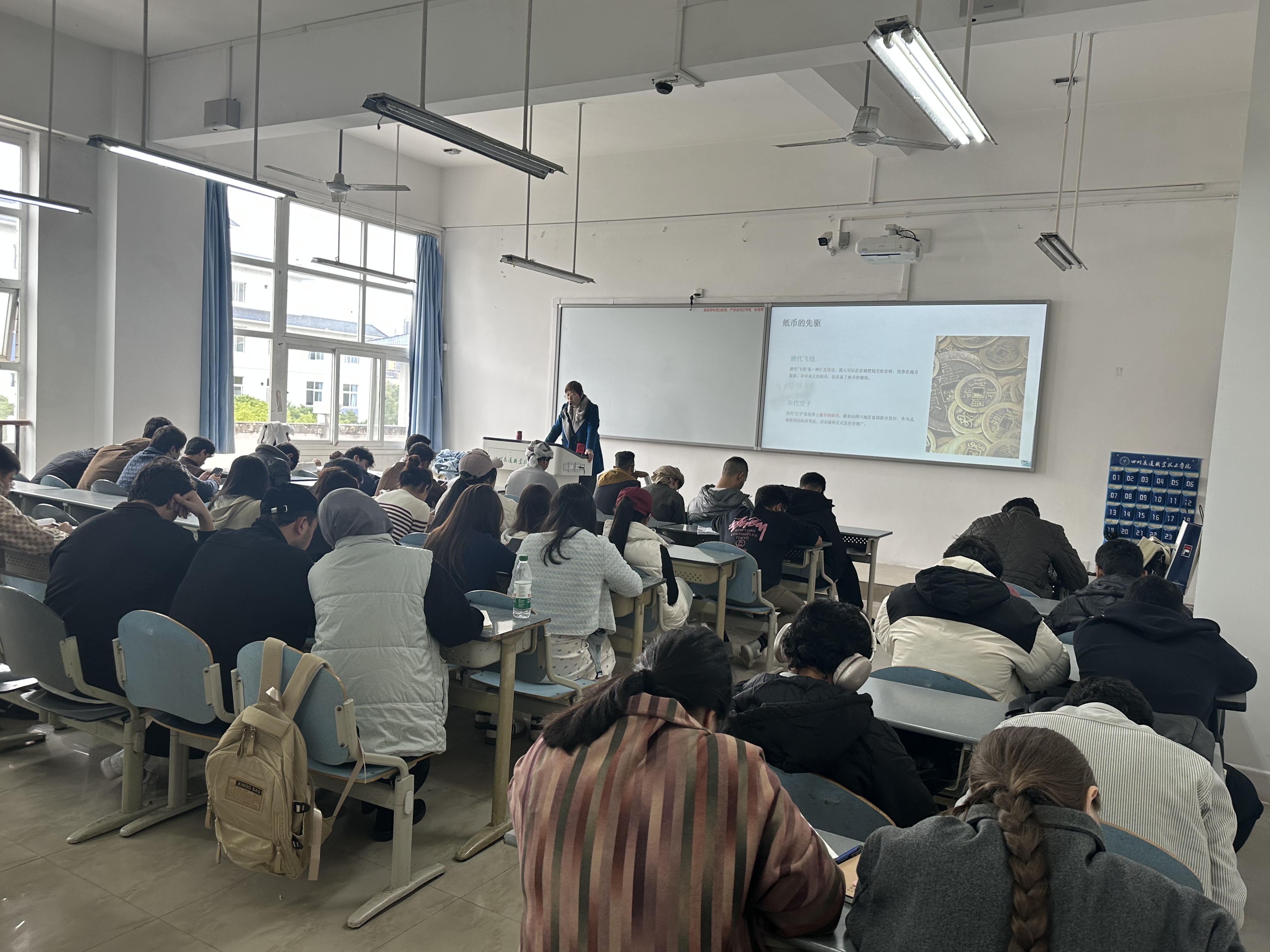 11月7日,国际学院在1305教室开展“走进中国”系列讲座,本次讲座以“中国货币发展史——从古代到现代的演变”为主题,以生动的历史脉络与丰富的货币文化内涵,为国际学生搭建起感知中国历史经济发展的桥梁。