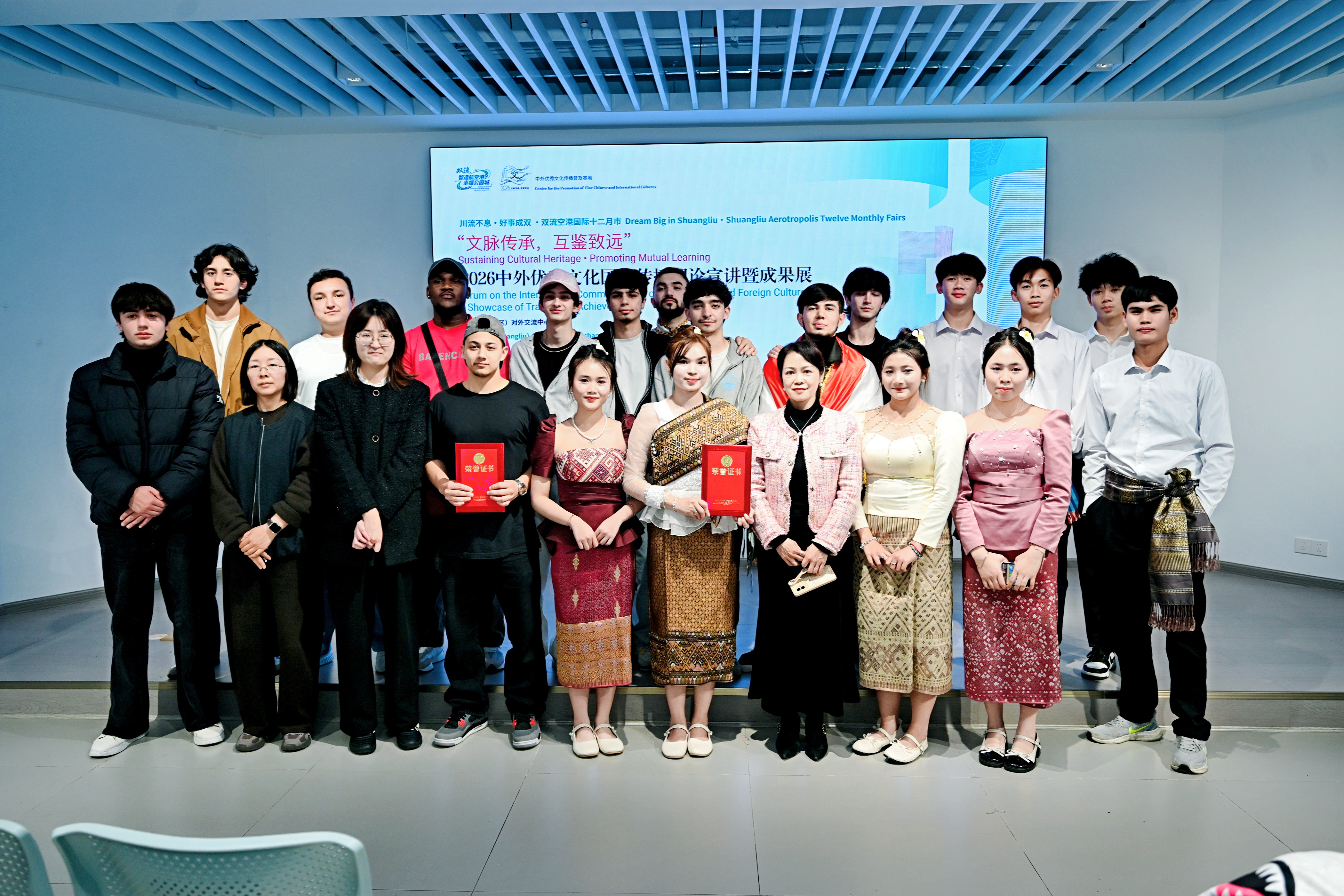 3月27日,“文脉传承·互鉴致远”系列理论普及活动——2026中外优秀文化国际传播理论宣讲暨成果展,在成都市(双流区)对外交流中心成功举行。我校作为协办单位深度参与本次活动,我校国际学生团队携才艺作品亮相成果展,生动展现了中外文化交融的独特魅力。